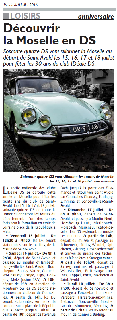 Alors nul doute que ce rassemblement de plus de 75 DS pendant 4 jours au coeur de la Lorraine va laisser des traces, et pas seulement d’huile et de pneus. Le presse locale l’a bien senti, et annonce les couleurs plus d’une semaine à l’avance.