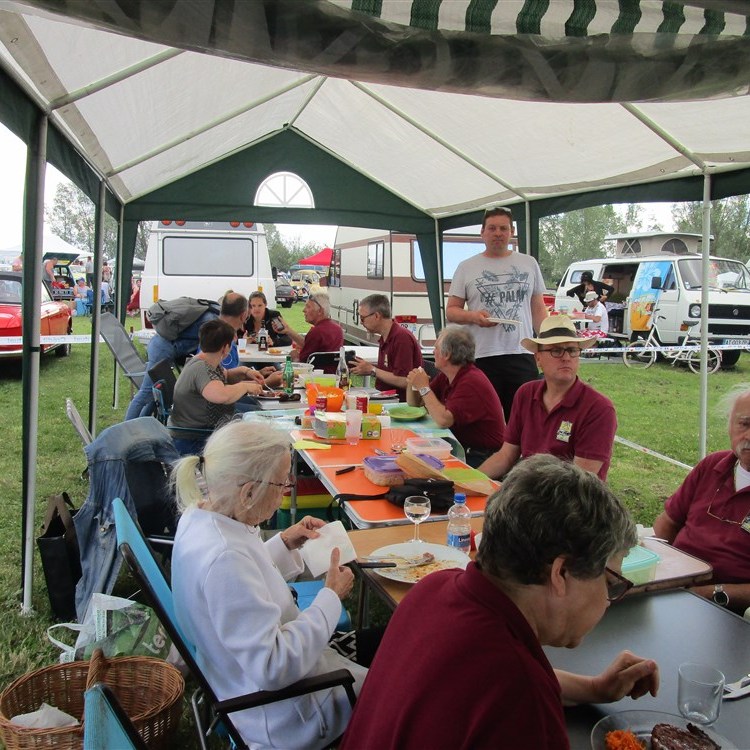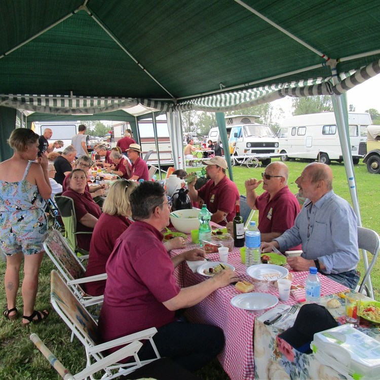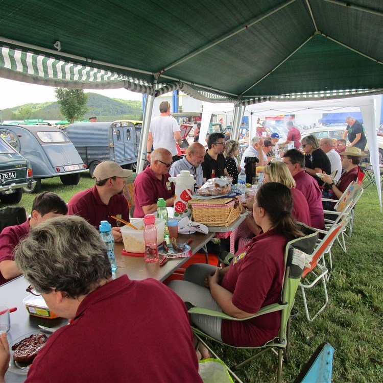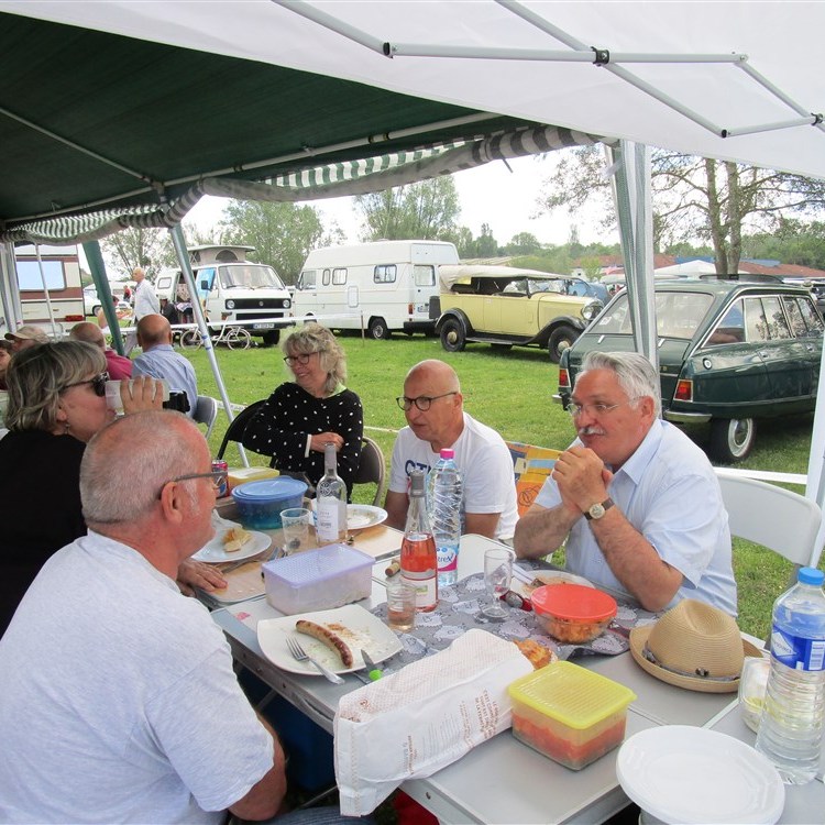 La 34e édition de Rétro Meus’Auto a démarré sur les chapeaux de roues ce samedi avec des milliers de visiteurs et près de 4 000 véhicules exposés. Voitures, motos, camions anciens, un vrai régal pour les yeux des passionnés de véhicules anciens. Pour la convivialité, il fallait se retrouver sous notre tonnelle afin de pouvoir profiter de l’apéro et du barbecue offert par le club.