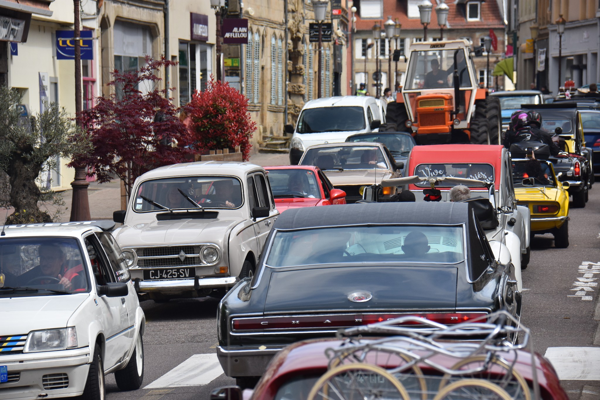 Ce bouchon a été un grand succès sur St AVOLD où nous avons atteint plus de 300 véhicules dont 119 inscrits sur internet. Dès le matin 9h00, les premiers participants frappaient déjà aux barrières malgré un début annoncé à 10h30. Toute la journée, de nombreux spectateurs se sont promenés dans les rues et sur la place.