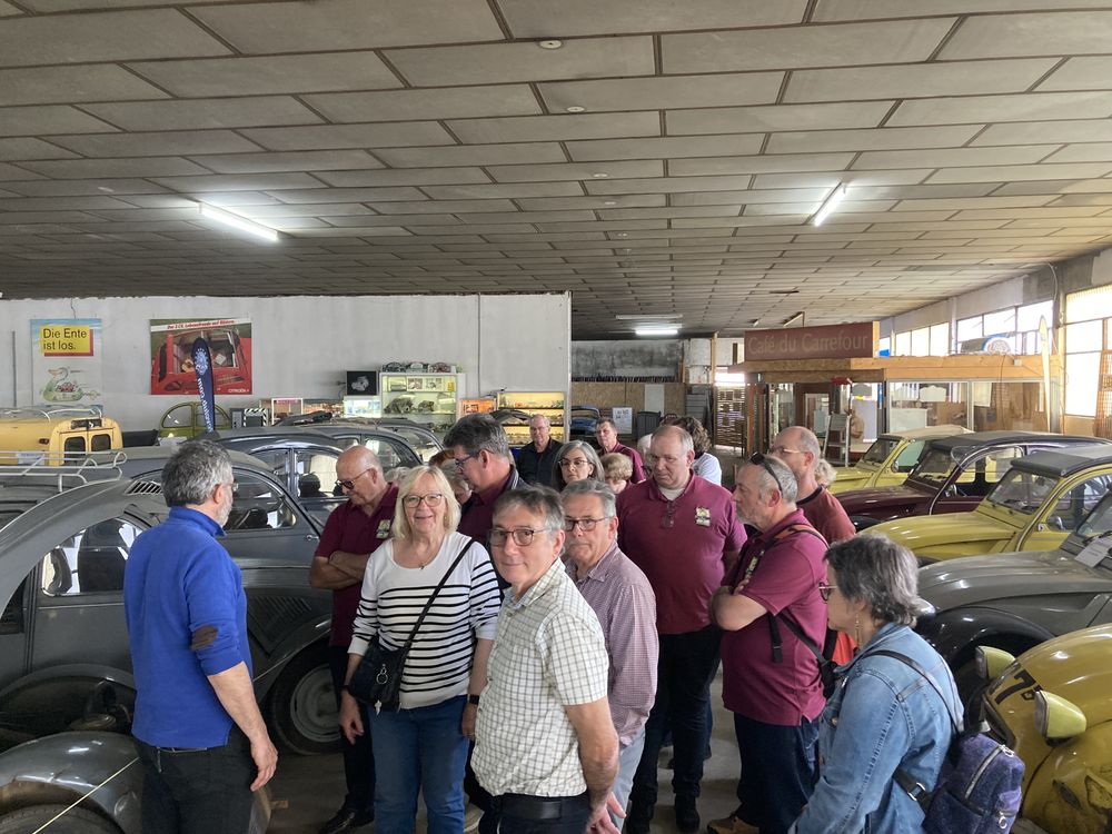 Nous étions 44 participants par cette belle journée ensoleillée. Tous les ingrédients étaient réunis pour passer un bon moment. Après un bon repas au charmant restaurant des Vosges, visite du musée de la 2CV situé à 300 m. Celui-ci abrite tout ce que l’on peut imaginer comme carrosseries et modèles rares, ( genre une 2CV ULM ). Un musée à revoir pour les inconditionnels. Après cette visite guidée, le groupe s’est séparé pour regagner ses pénates…