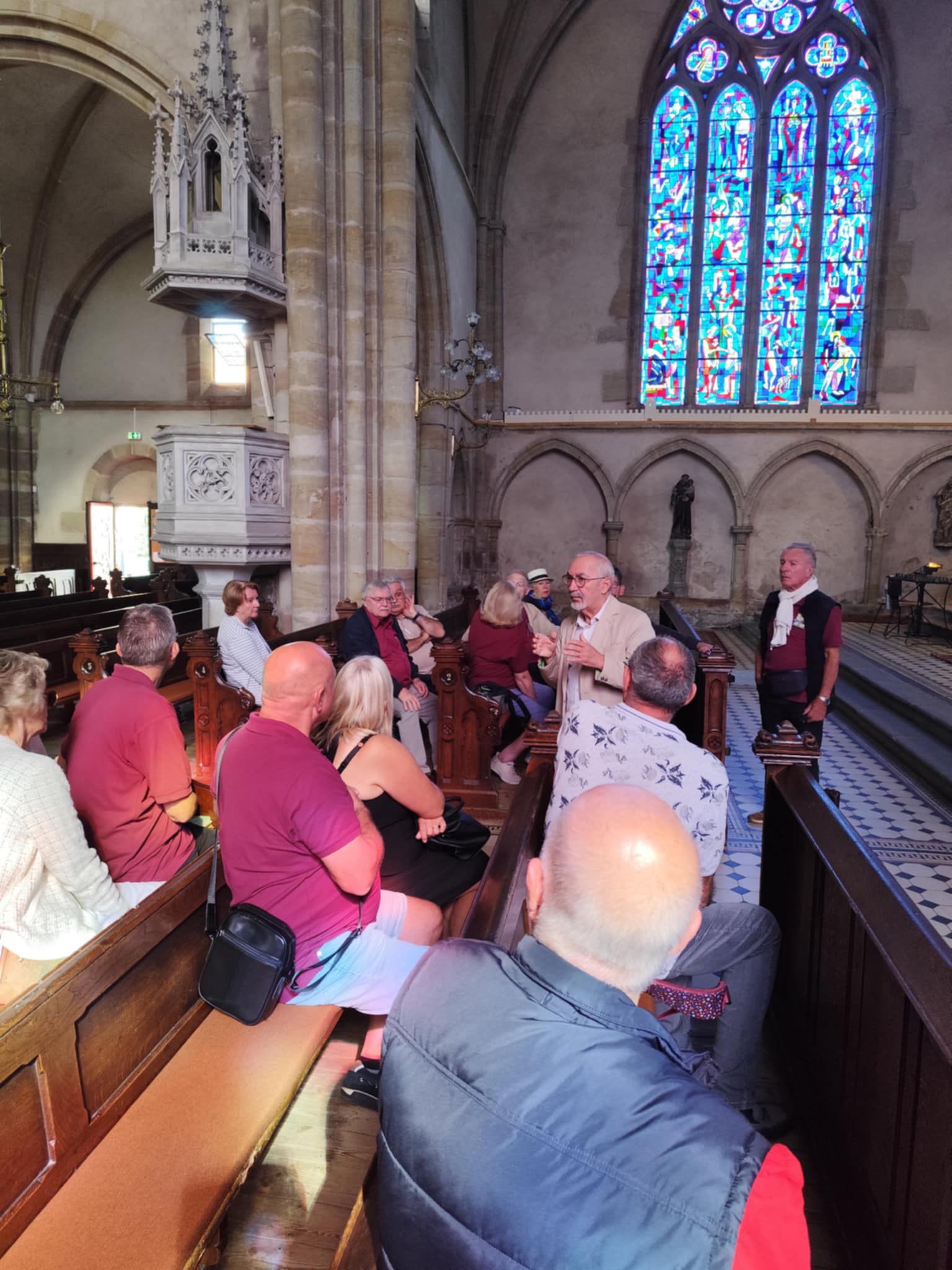 Balade surprise découverte aux alentours de Forbach pour une poignée de volontaires. Le tout sous un beau soleil. Au programme, découverte du cimetière de St Avold puis visite de la collégiale de Hombourg haut avec guide, resto, emplettes au magasin » ambiance et fêtes » de chez notre ami Ludo, et nous avons fini par une magnifique vue.